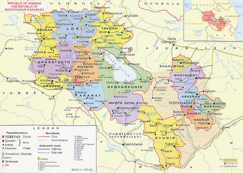 Armenien ist eines der ältesten und schönsten Länder der Welt. Das Land liegt am Übergang zwischen Kleinasien und Transkaukasien, zwischen Orient und Okzident. Das ist ein Bergland im Süden von Kaukasus. Das Land grenzt an Georgien, dem Iran, der Türkei und Aserbeidschan.Der heutige Staat umfasst ein Gebiet von 29.800 Quadratkilometern im Nordosten des Armenischen Hochlands. Armenien ist ein sehr ausgeprägtes Gebirgsland – 90% der Landesfläche liegen mehr als 1000 Meter über dem Meeresspiegel, die Durchschnittshöhe beträgt sogar 1800 Meter. Von Norden her erstrecken sich die über 3000 Meter hohen Ausläufer des Kleinen Kaukasus. Die höchste Erhebung ist der erloschene Vulkan Aragaz (4090 Meter) unweit des biblischen Ararat, der tiefste Punkt liegt rund 380 Meter hoch am Fluss Aras an der Grenze zum Iran.