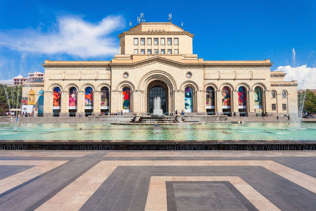 Ankunft am frühen Morgen in Jerewan, Empfang durch die Reiseleitung und Transfer zu Ihrem Hotel. Sie können Ihr Zimmer direkt nach der Ankunft beziehen und sich etwas ausruhen. Nach dem Frühstück starten Sie zu einer Stadtbesichtigung. Zu Beginn der Stadtrundfahrt führt uns unser Weg zum Museum für armenische Geschichte, wo Sie sich ein umfassendes Bild des Landes machen können. Spaziergang im modernen Stadtzentrum. Im Hause eines Dudukmeisters werden wir den Klängen verschiedener armenischer Flöten lauschen und eine Kaffeepause einlegen. Anschließend begeben wir uns zum bekannten Obst- und Gemüsemarkt Gum, wo Sie eine Fülle an armenischen Trockenfrüchten, Nüssen und anderen Spezialitäten entdecken können. Den Tag lassen wir in einem zauberhaften Restaurant ausklingen, wo Sie nationale Köstlichkeiten unter Begleitung traditioneller Musik genießen können. Übernachtung in Jerewan. F/A