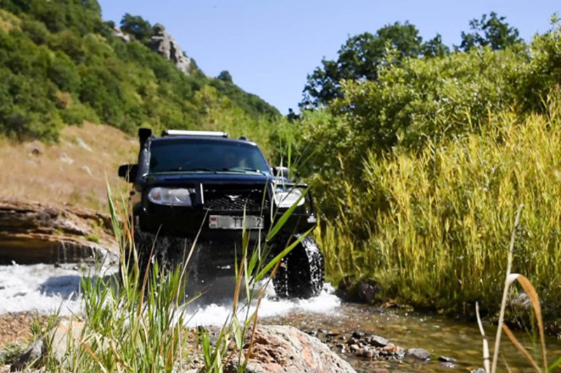 Today after breakfast we drive to the beautiful gorge, where we can admire the magnificent waterfall, ride the cable car up the mountain from where a beautiful view of the city opens up. We drive into the mountains with off-road vehicles, to the mineral springs and at the same time enjoy the beauty of nature. After lunch we drive to the Goris city. On the way we visit the 7500 years old observatory «Karahundsch» or also called «Sorats Karer». Overnight is in Goris. b/l