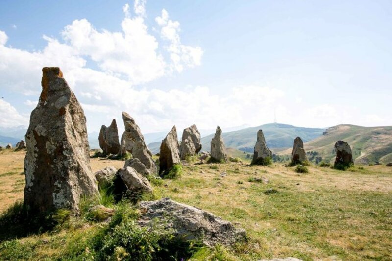 In the early morning we will drive south through the Ararat Plain, Armenia's largest wine region and to the Khor Virap Monastery, behind which rises the sacred mountain of all Armenian Father Ararat and in front of which extends the Mother River Araks. In a deep dungeon, on the hill of the monastery, the first catholicos of Armenians Gregory the Illuminator has been closed for 13 years. The monastery has become a popular place of pilgrimage for locals and tourists alike. According to the tradition, Noah had cultivated the first grape vines on this valley after the Flood. And since then wine has been made in the country. on the we are going to a rugged, picturesque landscape, to Noravank. Visit the beautiful monastery (13-14th c.). On the way back, at the entrance of the gorge, we will visit the cave Areni 1, where archaeologists have uncovered settlement remains with about 6000 years old wine barrels and where 5500 to 6000 years old leather shoe was discovered. After a break for lunch and wine tasting with the locals, we head to the Syunik region, to Zorats Karer, also known as the "Stonehenge Armenia", the mysterious menhirs, where there is probably a 7000-year-old observatory. The scientists are still arguing about this. Then continue to Goris. (b/l)