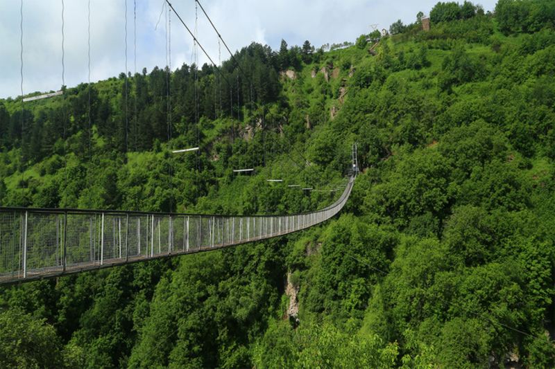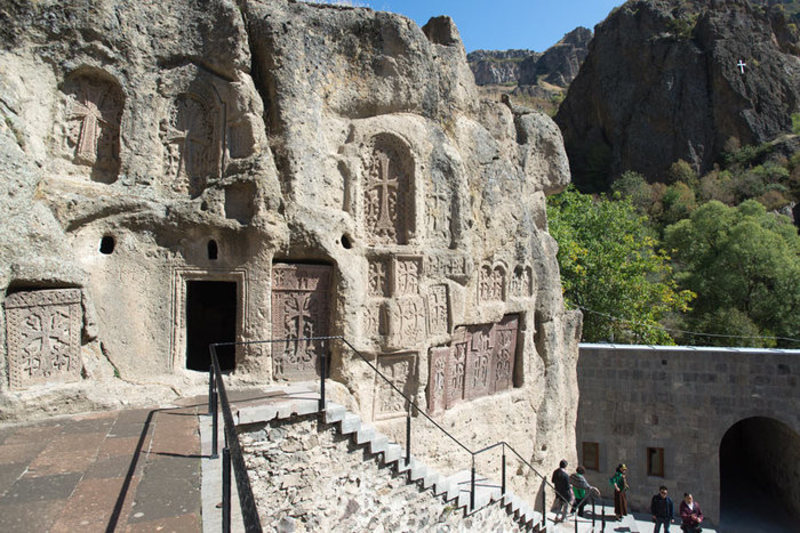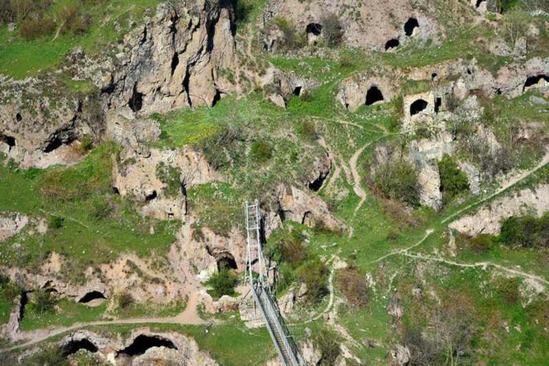 Weiter geht es in Richtung Osten zur Höhlenstadt Chndzoresk. Hier haben sich Siedler einst Unterkünfte für Mensch und Tier, Arbeitsstätten und Kirchen in die schroffen Felswände und in Felssäulen einer Schlucht aus Sandstein gegraben. Wir wandern hinab in eine kleine Schlucht über eine lange Treppe. Man kann über eine moderne Hängebrücke die andere Seite der Schlucht erreichen und dann ebenfalls durch die engen Pfaden des Höhlendorfs einen Rundgang machen. Dann fahren wir Richtung Südwesten, zum Dorf Tatev. Nach dem Mittagessen in einem Lokal bei der Schlucht fahren wir mit der längsten Seilbahn der Welt ‘‘Wings of Tatev’’, über die 5,7 km lange Schlucht des Flusses Worotan zum Kloster Tatev, einem mittelalterlichen Bauwerk, wo die Spuren einer berühmten Universität aus dem 14. Jh, der Universität von Tatev sind. Nachher beginnen wir mit einer Wanderung in die Schlucht zur Einsiedelei aus dem 16. Jh. In den Bäumen und Gebüschen verborgen thront die mysteriöse Einsiedelei, welche die Reisenden schon aus der Gondel der Seilbahn anlockt. Fahrt nach Sisian. Übernachtung in Sisian. Ca. 3km,- 800 Hm Abstieg / +830 Hm Aufstieg. (F/M/A)