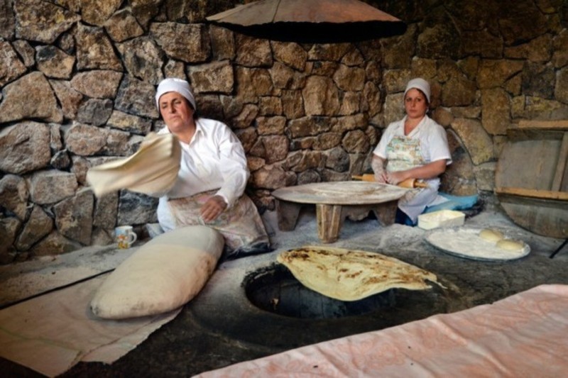 Das UNESCO-Felsenkloster Geghard mit seinen teils in die vulkanischen Felsen eingemeißelten Kirchen (12.-13. Jh.) zählt zu den schönsten in der Region. Es ist malerisch eingebettet in die locker bewaldeten Berghänge am Talende der Schlucht des Flusses Azat. Eine Wanderung führt uns durch die Azatschlucht. Dort können wir die schönsten Basaltsäulen Armeniens anschauen. Aus dem Canyon steigen wir hinauf auf das Plateau zum Sonnentempel von Garni aus hellenistischer Zeit (1. Jh.; rekonstruiert). Im Tempel lauschen wir den Klängen der Duduk, dem armenischen Nationalinstrument. Am späten Nachmittag lädt uns eine armenische Familie in ihr Haus ein und empfängt uns zum Essen. Gemeinsam backen wir Lavash, welches wir im Anschluss selbstverständlich auch verkosten können. Fahrtzeit: ca. 2,5 Std. (ca. 90 km), Wanderung: ca. 50 min. Übernachtung in Jerewan (F/P/A)