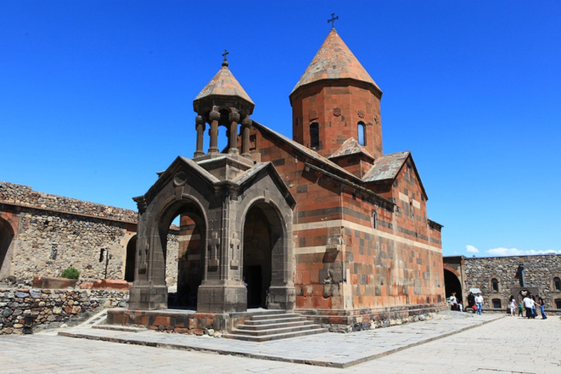 We reach Yerevan in the early morning, the capital of Armenia, and transfer to the hotel. After you have a rest from the journey, take a 2-hour tour of the city center. A city tour gives you a first overview of this bustling, multi-faceted metropolis, built on the banks of the Hrazdan River and on the surrounding hills about 950-1,200 m above sea level. You will visit the cascade, the opera house and through Northern Avenue you will go to the Republic Square, the heart of Armenia. The Historical Museum awaits us here, providing a comprehensive overview of Armenian history, from prehistoric artifacts to pieces of jewelery of Armenian Church architecture to Armenian culture exhibits from the 19th century and ethnographic information. Then we go to the fruit market. Here you can stroll through the fruit market and taste dried fruits, nuts and sweet treats. Afterwards we drive to the memorial of the genocide of the Armenians which was accomplished by Ottomans and Young Turks between 1894 and 1923. The highlight of the day is a visit to the cognac factory in Yerevan, where you can taste some well-known Armenian cognacs. The day ends in a beautiful Armenian restaurant with national music. (b/d)