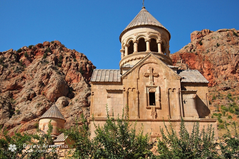 In the early morning we explore the Ararat plain, where in case of a good weather the mountain Ararat will welcome us. About 3 km from the foot of the mountain stands the Monastery of Chor Virap, which is an important place of pilgrimage and from where Christianity in Armenia was spread in the 4th century. Tradition has it that the first Catholicos of Armenians were thrown here in a deep dungeon for 13 years. Then we will drive to the south, pass the village of Areni, where the most famous wine variety Areni grows. We will taste local wine in the winery Areni. Afterwards we drive to the cave Areni 1, where a 6000 year old wine cellar, the oldest leather shoe in the world and many other things were invented. Then drive to the beautiful Norawank monastery from the 13.-14. Century, to a medieval Masterpiece built by the princely family Orbelian. Our lunch will be at a local family. Continue to the resort town of Jermuk. Walk through the city where you can taste mineral water from natural sources. Overnight is in the city. (b/l)
